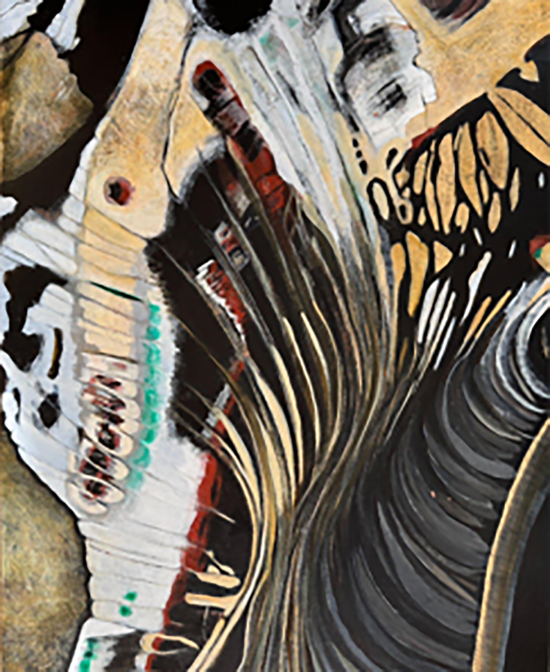 George’s series of acrylic and copper leaf paintings, based on her observations of corroding surfaces, are intricate abstractions, wonderfully suggestive and wide open to the viewer’s imagination. For Matlow, the act of creating has “a cyclical rhythm deeply rooted in the process of working with clay.” As the process unfolds his themes develop, exploration of form deepens, and new work emerges.